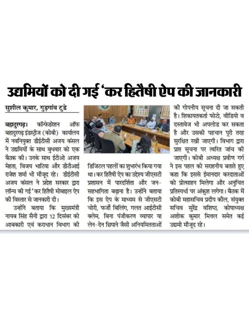 उद्यमियों को कर हितैषी एप के बारे में दी जानकारी |